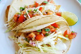 We love fish tacos!! Use what ever kind of fish you have. We buy tempura batter at the store, but you don't have to. We chop up cabbage, grate cheese, make pico de gullo. My wife makes a dip with sour cream, cilantro and lime. Its real yummy! Warm some corn tortillas in the micro wave by covering them in a damp paper towel or damp towel.